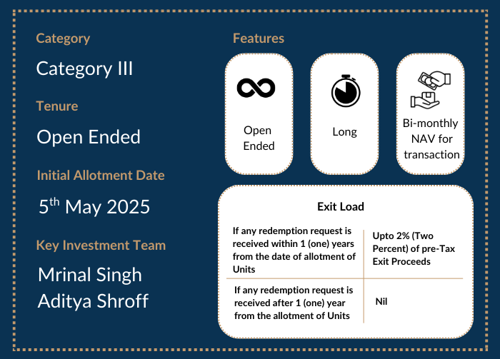 The fund operates as an open-ended Category III AIF, managing investments in accordance with its objective of delivering returns to contributors under applicable laws and fund documents.
